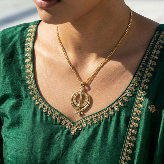 Ik-Onkar Sikh Pendant Necklace With White Enamel Background